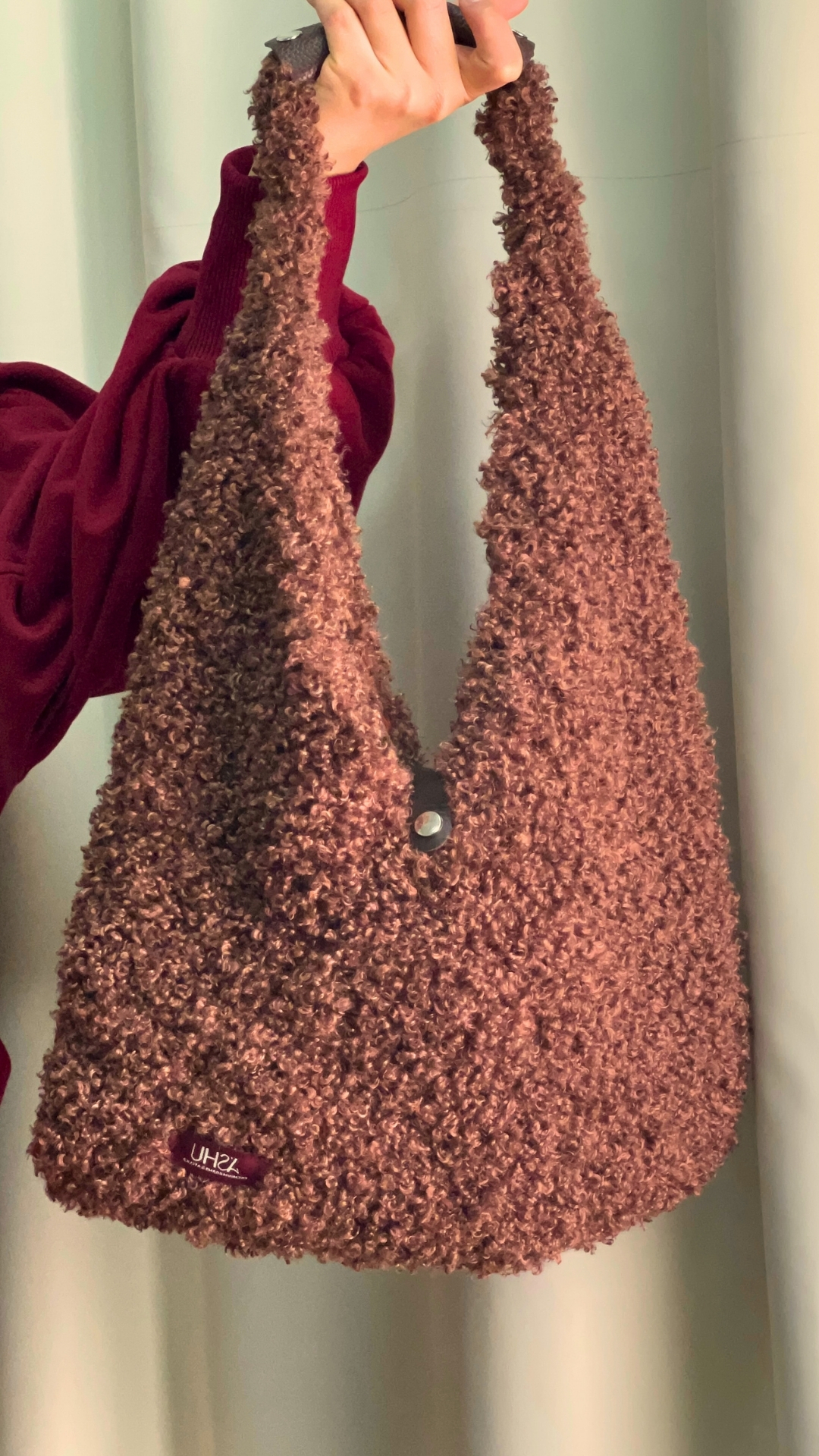 Носится на плече или в руке, красиво дополняет худи, пальто и пуховики, добавляя образу тактильного уюта и акцентного цвета. Каждый экземпляр создан вручную, поэтому ваша сумка будет по-настоящему уникальной.