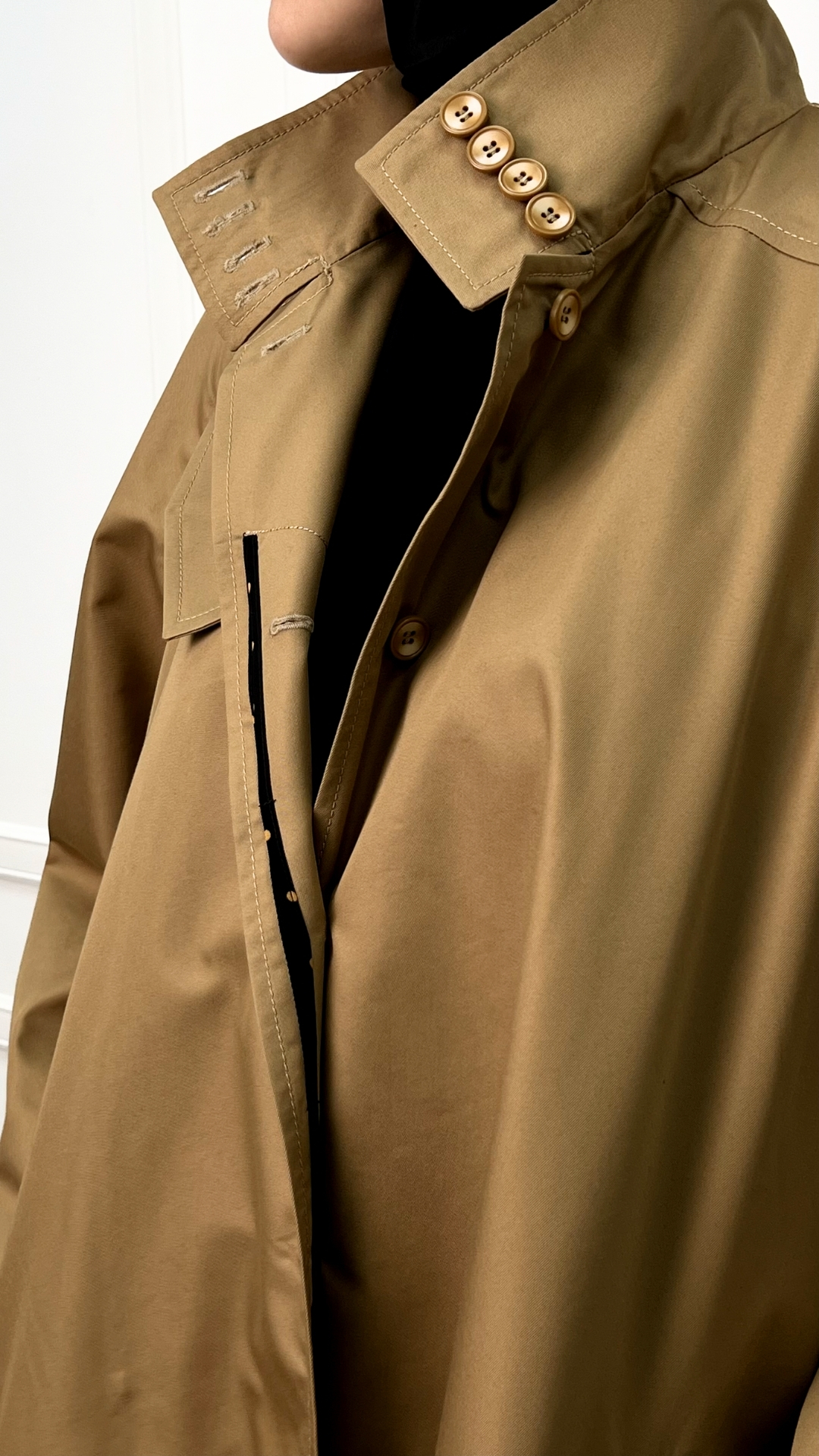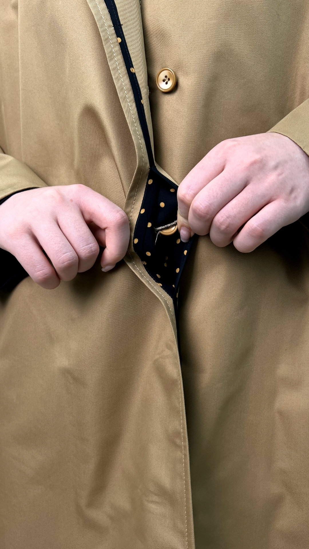 съёмный пояс в комплекте — можно носить тренч распахнутым или подчёркивать талию.