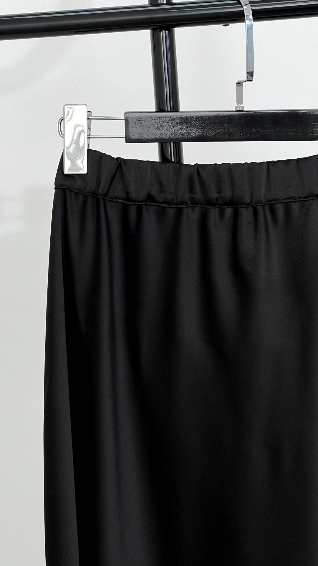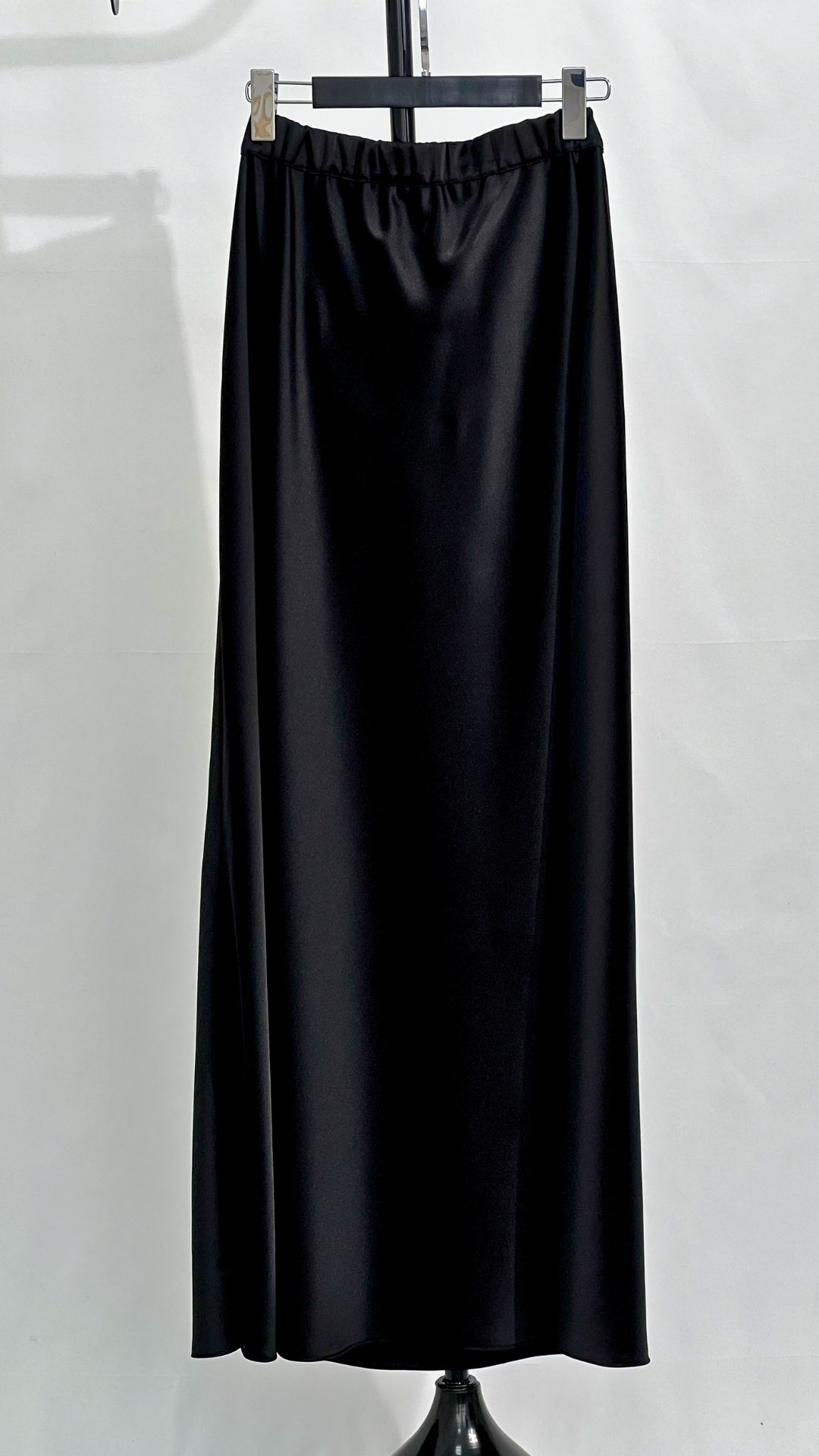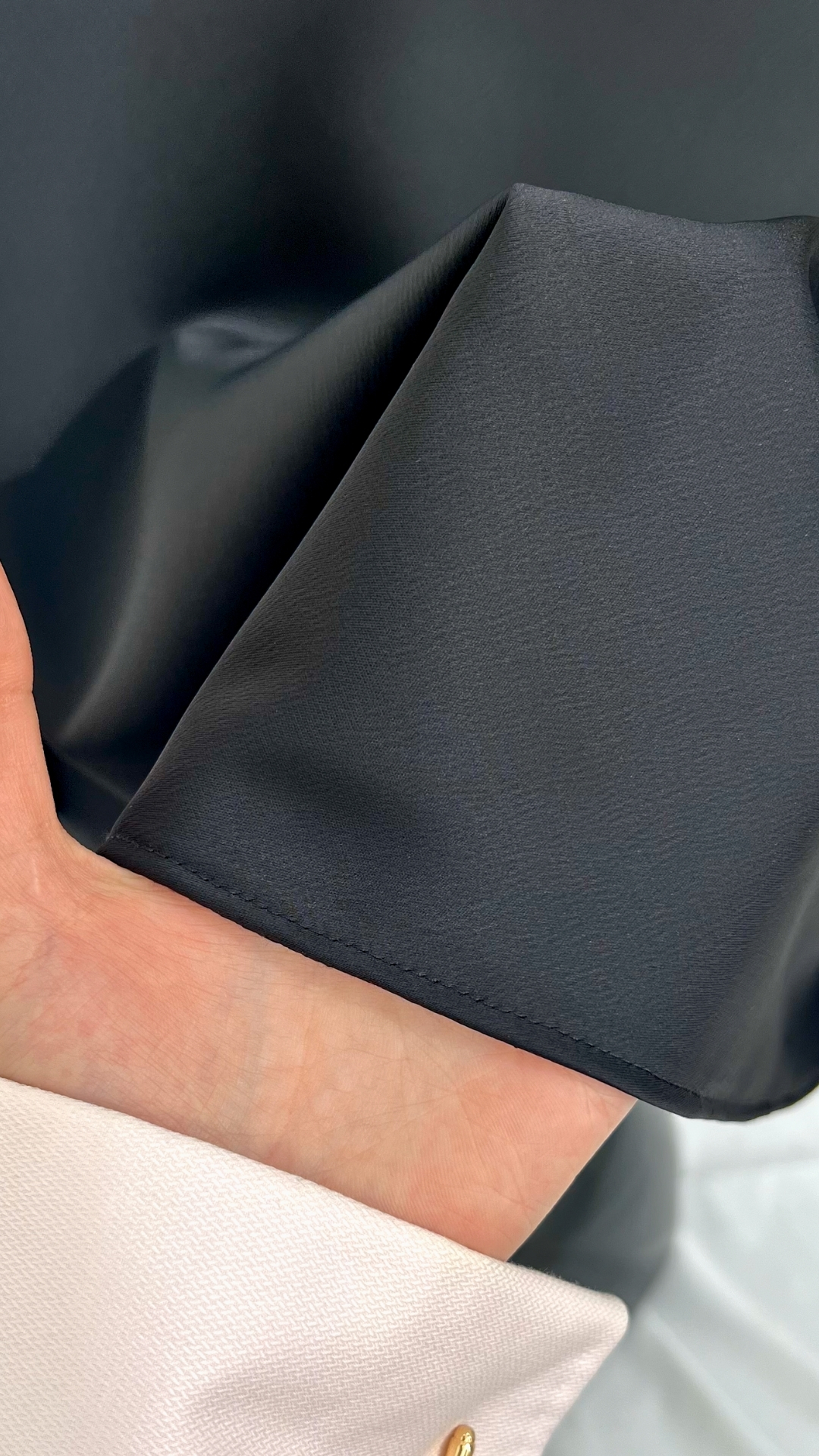 Юбка “Onyx” от A’SHU Premium Brand — лаконичная чёрная юбка по косой, которая работает и как база, и как самостоятельный акцент. Косой крой даёт красивое мягкое прилегание, не обтягивая и не подчёркивая лишнего, а лёгкий блеск шёлка Армани добавляет образу спокойной элегантности.