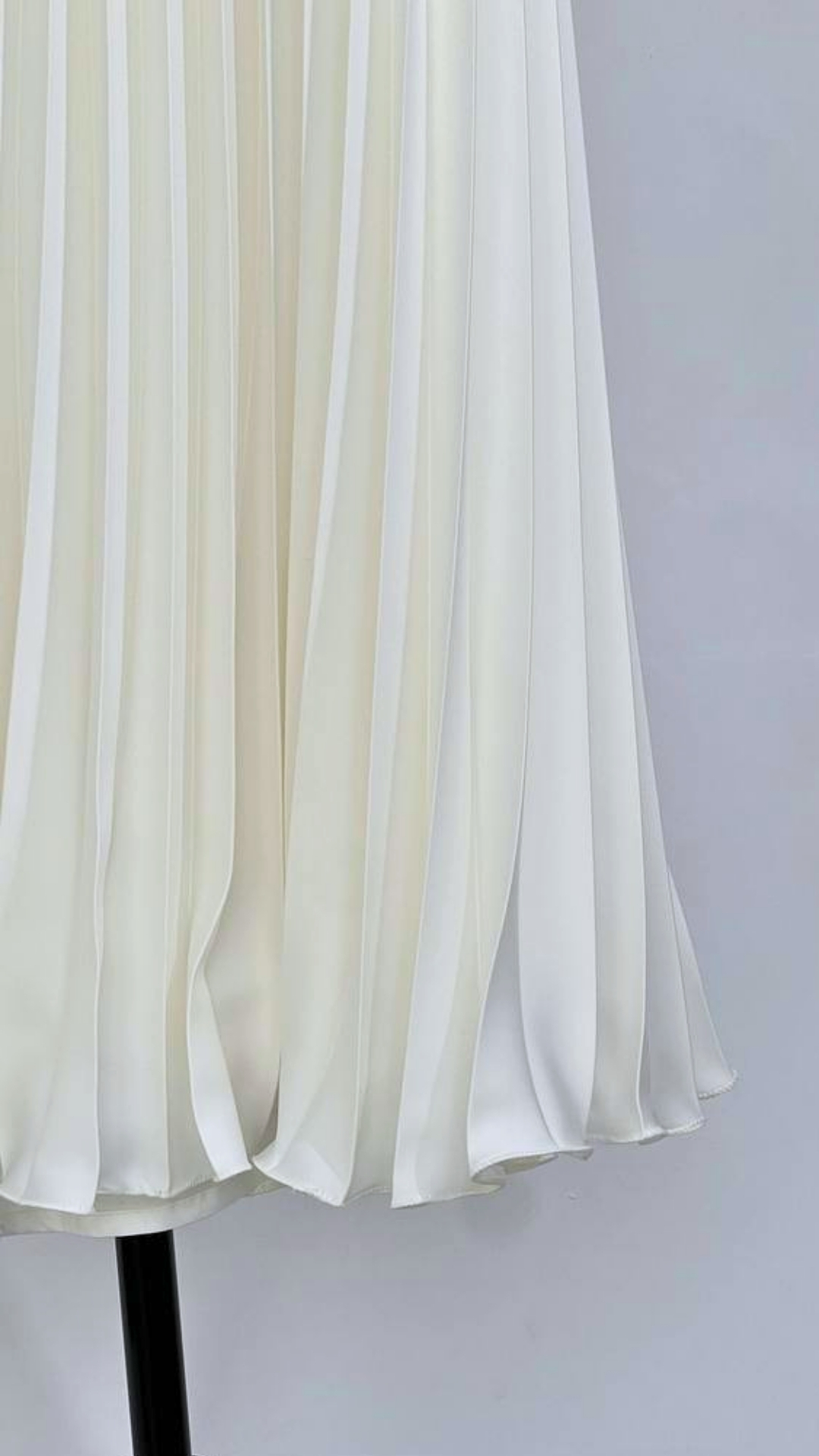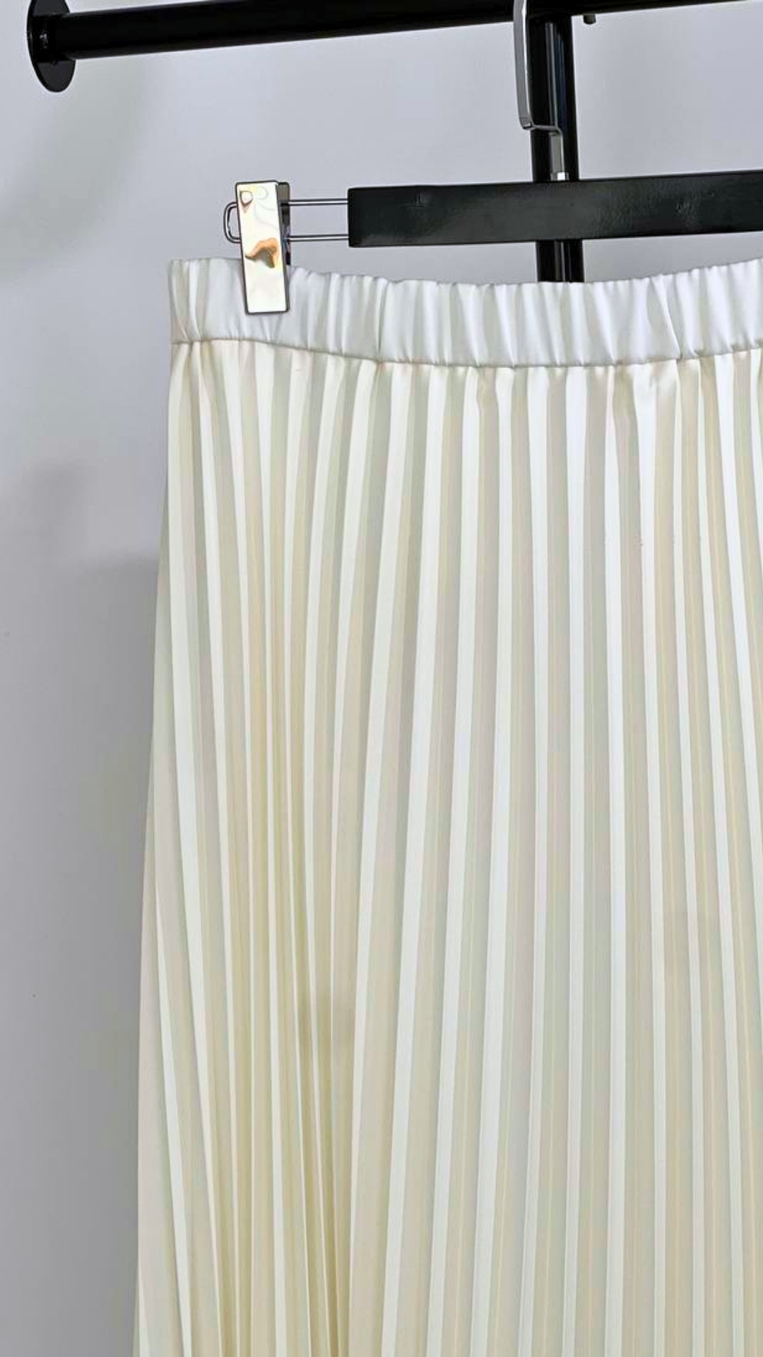 Юбка-плиссе “Luna” от A’SHU Premium Brand — светлая база, которая мягко подсвечивает любой образ. Шёлк с вискозой красиво струится при ходьбе, а молочно-белый оттенок остаётся актуальным вне трендов и сезонов.